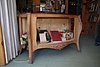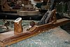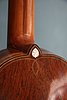 Vue de dos : Fait en merisier frisé, le manche en lui aussi en merisier frisé et incrusté de palissandre