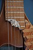 Dessus en cèdre avec touche d'ébène. Pont en bois de rose, dos et côtés en érable frisé. Joint : à la 12e frett. Zéro Frett