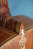 Marqueterie sur centre massif 5 plis. Iinspiration du 17e siècle, fond loupe acajou, Acajou avodire, zébra, bois de rose, palissandre, bâti en cerisier